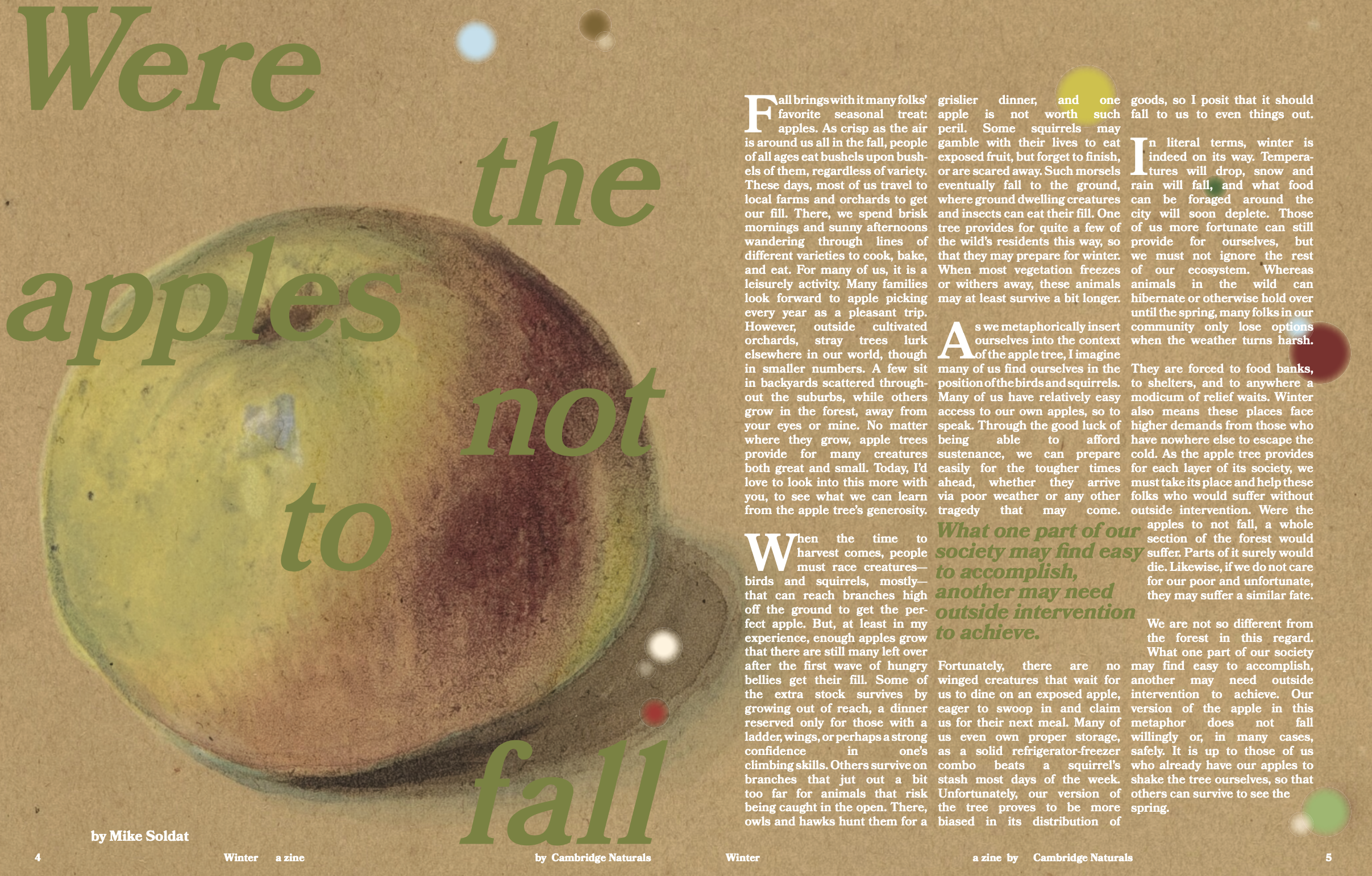 The zine became so popular, it’s become a seasonal fixture and even attracted a sponsor in its second year. Fableworks handles the submission process engaging the Cambridge Naturals community, edits the work, and designs the print layout each quarter.